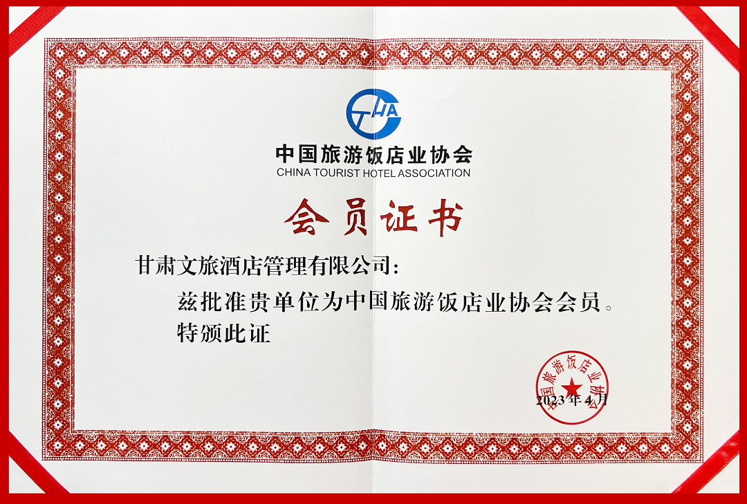 4 月 27 日,甘肅文旅酒店管理有限公司正式加入中國(guó)旅游飯店業(yè)協(xié)會(huì),成為協(xié)會(huì)會(huì)員。中國(guó)旅游飯店業(yè)協(xié)會(huì)理事對(duì)于甘肅文旅酒店管理有限公司的企業(yè)文化、管理團(tuán)隊(duì)、服務(wù)理念予以高度肯定,批準(zhǔn)甘肅文旅酒店管理有限公司為中國(guó)旅游飯店業(yè)協(xié)會(huì)團(tuán)體會(huì)員,并授予會(huì)員證書。